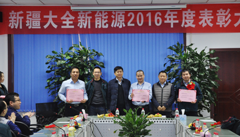 1月21日,新疆大全新能源召开2016年度表彰大会,公司总经理、副总经理、总经理助理出席会议,获得集团表彰的集体和个人参加了表彰。会议在轻松愉悦的气氛中进行,会上总经理发表了热情洋溢的讲话,并为实现2017年的工作任务为大家加油鼓劲。