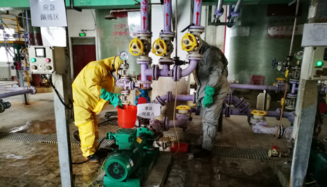 此次演练主要针对人员眼睛化学灼伤急救处理、泄漏处置、现场警戒三个科目进行,演练小组成员出色完成了演练任务,达到了“演练与实操结合”的效果,提高了车间应急处置能力。