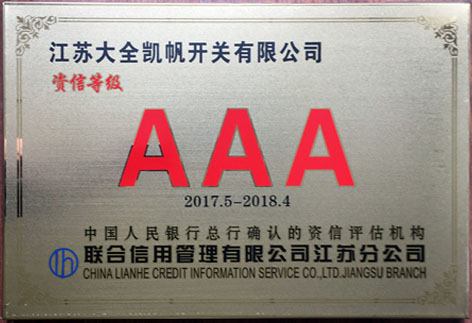 近日,凯帆开关获得了由联合信用管理有限公司授予的AAA资信评定。