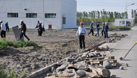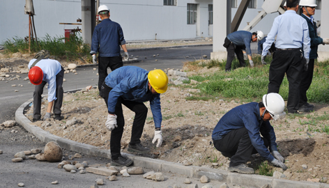 为建设花园式工厂,5月6-10日,新疆大全新能源组织员工在工作之余开展清理厂区草坪杂物的集体活动。公司将厂区内主要道路分段划分给相关部门,每条道路由一名公司级领导带队,集中清理出草坪中的石头杂物,为下阶段的绿化奠定基础。