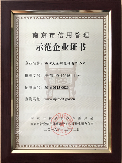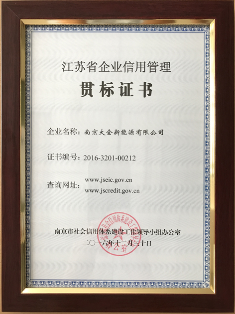 南京大全新能源通过南京市信用管理示范企业验收