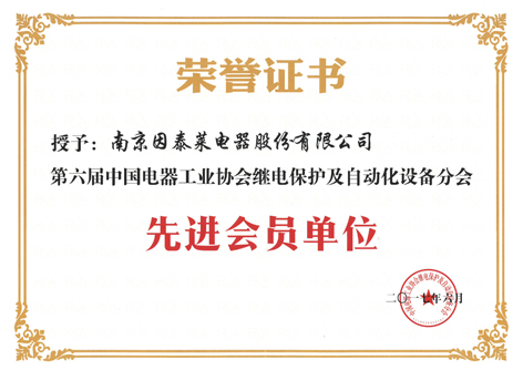 南京因泰莱荣获“中国电器工业协会继电保护及自动化设备分会先进会员单位”称号