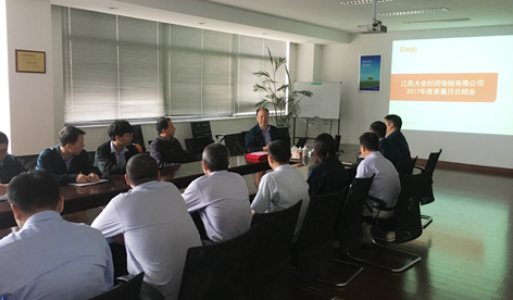 10月13日,大全封母举行2017年质量月活动总结及表彰会议。会议总结了质量月相关工作,并对质量月活动中的优胜者进行表彰和奖励。公司总经理作质量工作指示,号召全体员工向先进人物学习,立足岗位提升产品质量和服务质量,通过提高重大项目和国际项目的履约质量,努力打造封闭母线的大全品牌。