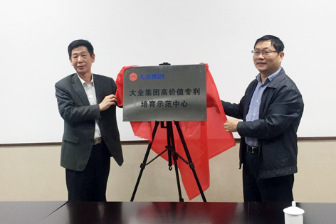 10月28日,大全集团高价值专利培育示范中心揭牌仪式在扬中举行,江苏省知识产权局协调处处长牛勇和大全集团执行总裁葛飞共同为中心揭牌。大全集团是首批省级高价值专利培育示范中心入选的七家单位之一,共获400万引导资金支持。