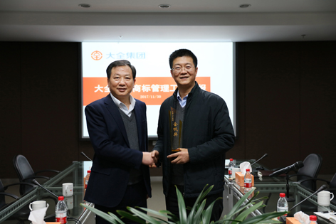 11月30日,镇江市工商局商标处处长吕国平一行在扬中市市场监管局局长兰乔根陪同下到大全集团调研商标管理工作,集团副总裁蔡斌接待。