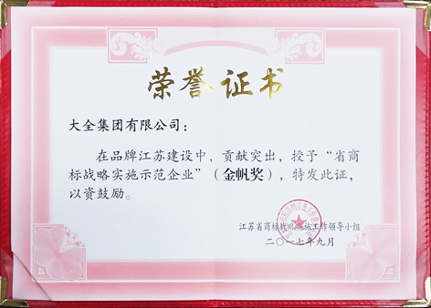 座谈会上,集团总裁办品牌组汇报了相关商标管理工作,扬中市市场监管局局长兰乔根颁发了在品牌江苏建设中,大全集团获得的“省商标战略实施示范企业”(金帆奖)证书和奖杯。