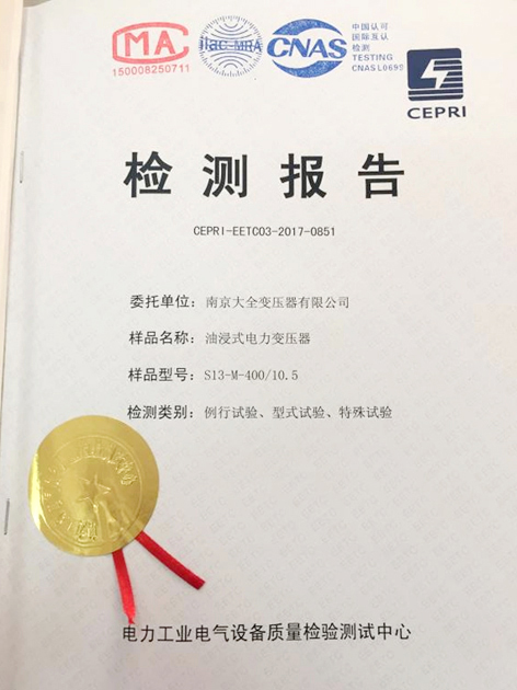 近日,南京大全变压器生产的干式变压器及油浸式变压器通过国家电网分级分类(高端产品)变压器抽检并取得检测报告,这标志着南京大全变压器成为国家电网高端产品的合格供应商,为后续国家电网高端产品的供货奠定了坚实的基础。