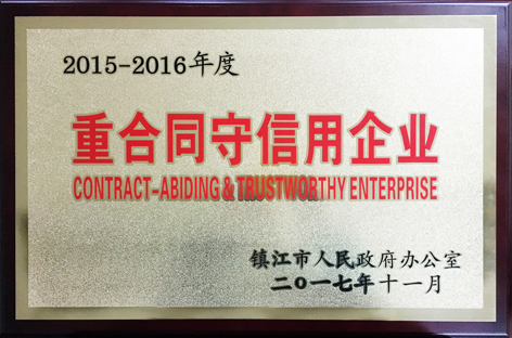 12月27日,长江股份获得镇江市政府授予的“重合同守信用企业”荣誉称号。