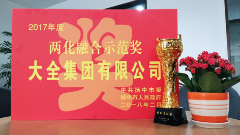 2月23日,扬中市委、市政府召开全市机关作风建设大会,大全集团获全市“两化融合示范奖”并接受表彰。同日,新坝镇党委、政府召开综合表彰暨发展动员大会,大全集团获“特别贡献奖”并接受表彰。