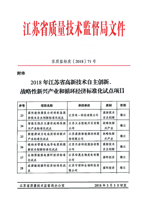 近日,凯帆开关申报的“智能化低压元器件战略性新兴产业标准化试点”被江苏省质量技术监督局评定为“2018年江苏省高新技术自主创新、战略性新兴产业和循环经济标准化试点项目”。