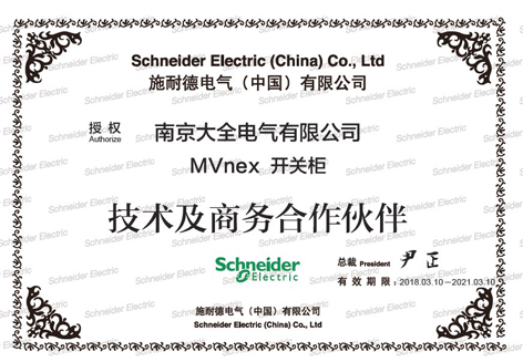 近日,南京大全电气获得了施耐德电气MVnex中压配电柜授权合作伙伴资质,同时公司还拥有施耐德Okken和Blokset低压配电柜授权及Smart Panel智能配电系统授权资质。现在,南京大全电气已获得了施耐德电气全系列中低压配电设备和系统集成产品资质。