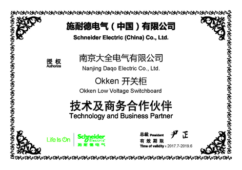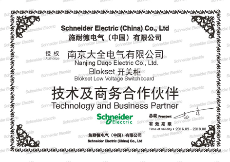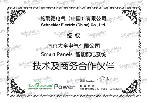 南京大全电气获得施耐德电气全系列中低压配电设备和系统集成产品资质