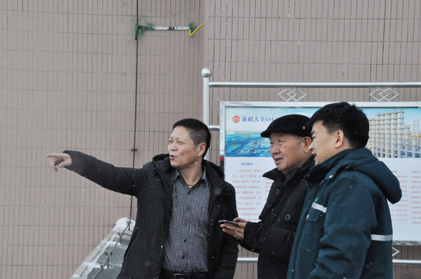 1月7日,董事长徐广福不畏严寒到新疆大全新能源检查指导工作,大全新能源CTO周强民、新疆大全新能源总经理曹伟接待陪同。董事长听取了管理团队关于公司2018年生产经营、项目建设及2019年工作目标的汇报,深入生产现场检查施工进度,并做出重要指示。