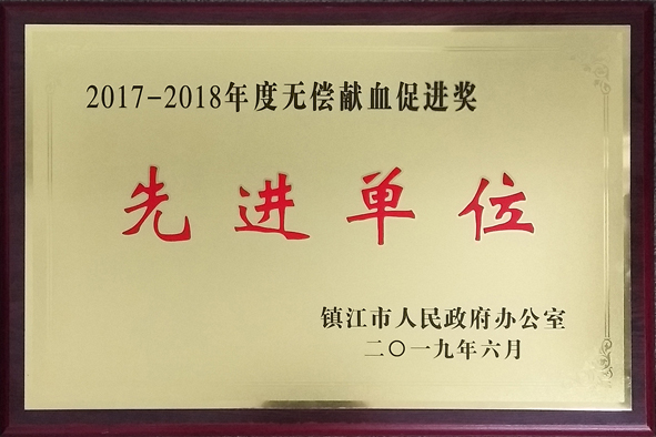 近日,大全集团被镇江市人民政府办公室授予2017-2018年度无偿献血促进奖“先进单位”荣誉称号。