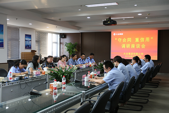 9月19日,镇江市市场监管局刘建副局长一行到大全集团开展“守合同、重信用”调研座谈,扬中市市场监管局吴振军副局长等领导陪同,集团副总裁蔡斌接待。