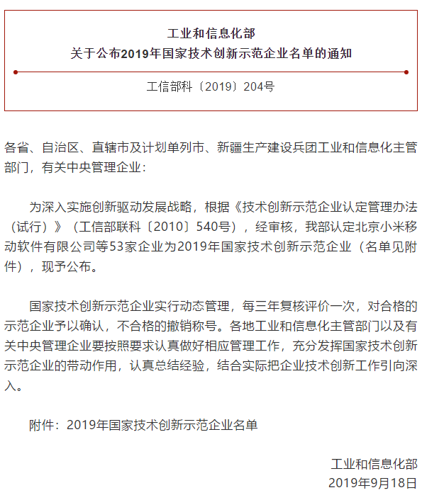 近日,工业和信息化部发布了《关于公布2019年国家技术创新示范企业名单的通知》,新疆大全新能源被成功认定为“国家技术创新示范企业”。