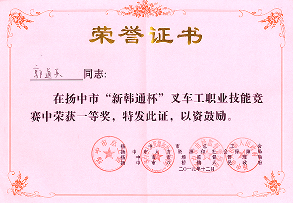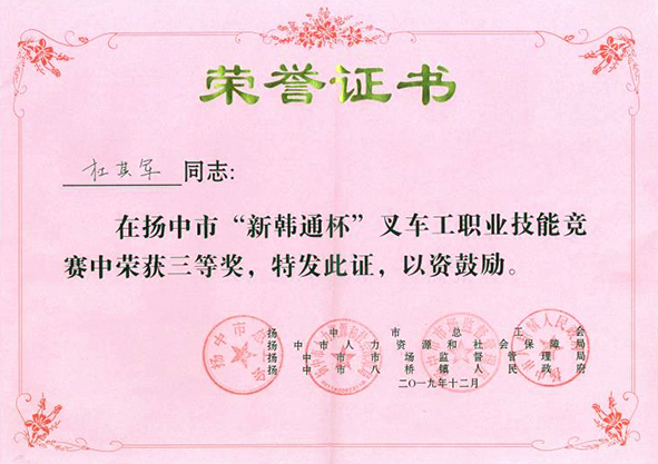 大全员工显风采 分获扬中市叉车竞赛一等奖和三等奖