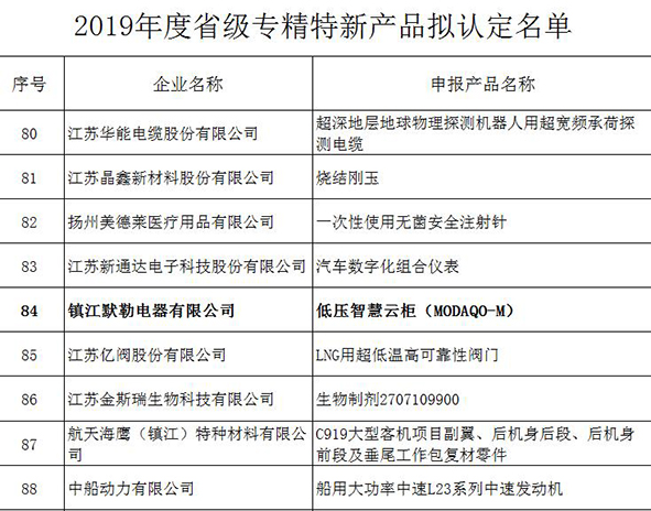 近日,江苏省工业和信息化厅网上公示了2019年度省级专精特新小巨人企业认定名单,大全集团三家公司榜上有名。本次申报工作由集团技术中心和集团总裁办牵头,三家公司积极响应。镇江默勒电器有限公司的低压智慧云柜(MODAQO-M)被评定为“2019年度省级专精特新产品”,镇江西门子母线有限公司被评定为“2019年度省级小巨人企业(制造类)”,江苏大全凯帆开关有限公司被评定为“2019年度省级小巨人企业(创新类)”。