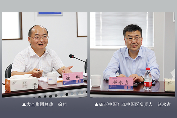 8月27日,ABB(中国)有限公司EL中国区负责人赵永占、ELSP亚太区负责人何晓辉一行访问大全集团。大全集团总裁徐翔,副总裁朱亚伟,镇江默勒、南京大全电气、长江股份等公司总经理热情接待了ABB高层领导。