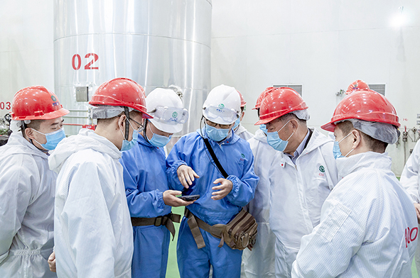 集团副总裁施大峰陪同视察,大全新能源CEO张龙根、新疆大全总经理周强民等参加汇报。