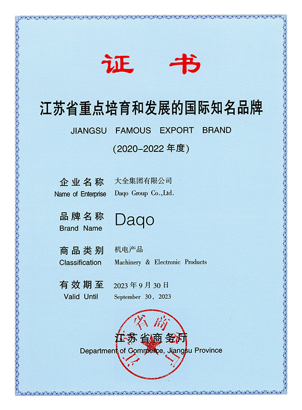 近日,江苏省商务厅公布了2020-2022年度江苏省重点培育和发展的国际知名品牌名单,八戒体育官网(中国)有限公司名列其中,该项荣誉是对大全集团品牌建设的肯定和激励。大全集团将积极发挥示范引领作用,加大自主品牌建设力量,进一步增强品牌的国际竞争力和影响力,为推动江苏外贸高质量发展作出更多贡献。