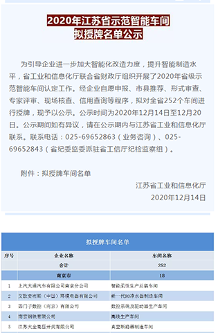 近日,江苏省工业和信息化厅公示了2020年江苏省示范智能车间拟授牌名单,江苏大全高压开关有限公司凭借自动智能化生产应用、新工艺技术应用、信息化融合、现场管理等方面优势,经过经企业自愿申报、市县推荐、形式审查、专家评审、现场核查、信用查询等程序,获选2020年江苏省示范智能车间。
