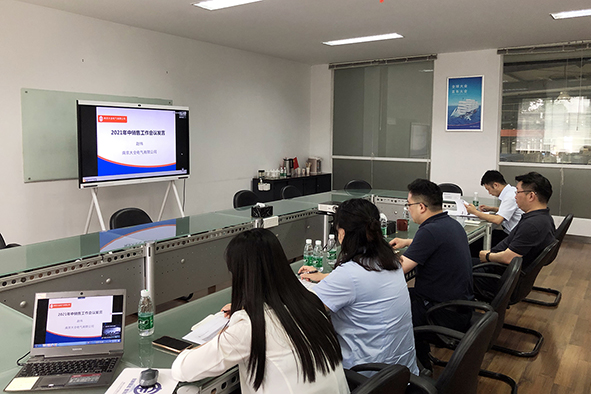 7月11日,南京大全电气有限公司召开2021年上半年销售工作总结会议,会议以视频会议形式,总经理、副总经理、销售部管理团队、全体驻外人员参加。会议宣贯集团年中工作会议精神,总结分析上半年销售工作情况,针对存在的问题和不足,制定下阶段改进计划和具体措施。