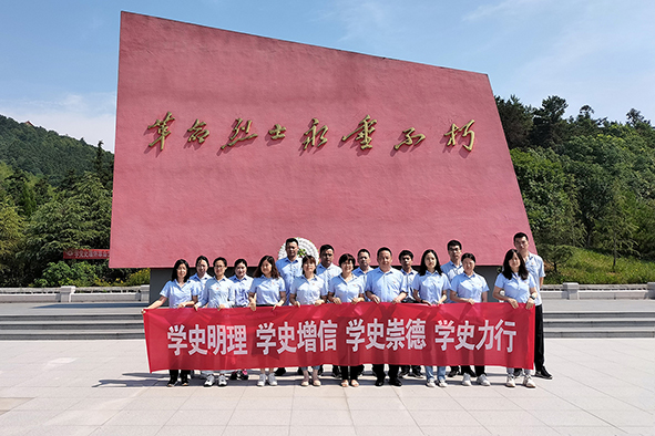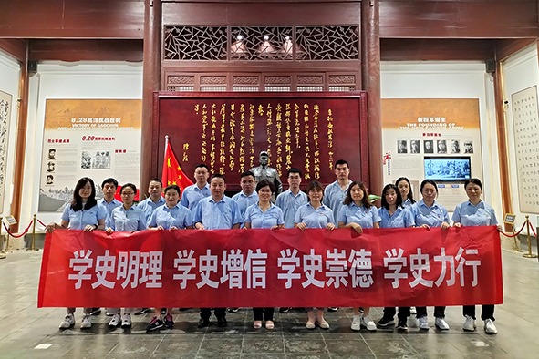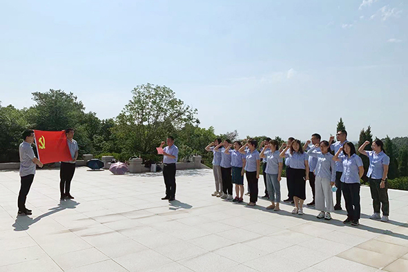 7月15日,大全集团南京党总支开展党史学习教育现场活动,全体党员到高淳游子山烈士陵园敬献鲜花,并面向党旗重温入党誓词。