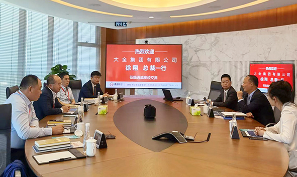 应通威董事局主席刘汉元的邀请,双方主要领导在通威集团举行会议,共同展望了光伏产业的美好前景,并探讨了双方在电气等领域的深入合作。新疆大全新能源股份有限公副董事长张龙根,四川销售公司总经理孙红军共同出席。