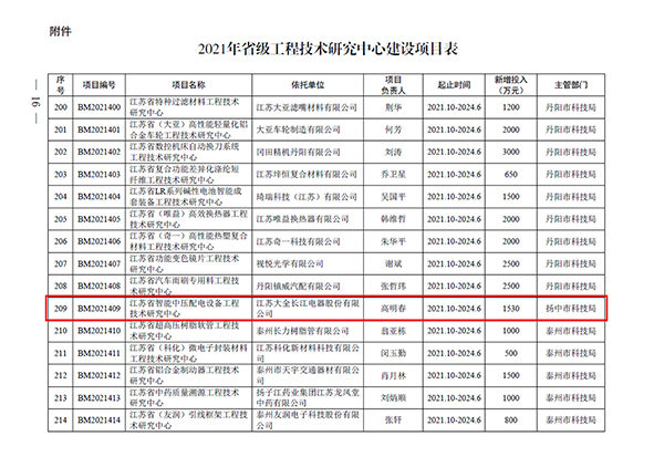 近日,经过江苏省科技厅组织专家评审,江苏大全长江电器股份有限公司申报的“江苏省智能中压配电设备工程技术研究中心”正式获批,标志着企业的自主研发能力得到进一步增强。