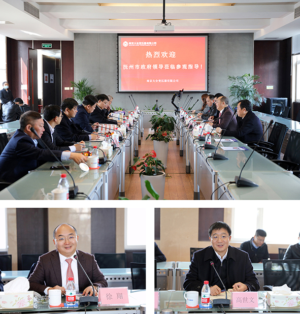 12月22日上午,抚州市委副书记、市长高世文一行到南京大全变压器有限公司调研,八戒体育官网(中国)有限公司总裁徐翔、南京大全变压器有限公司总经理唐建荣接待。
