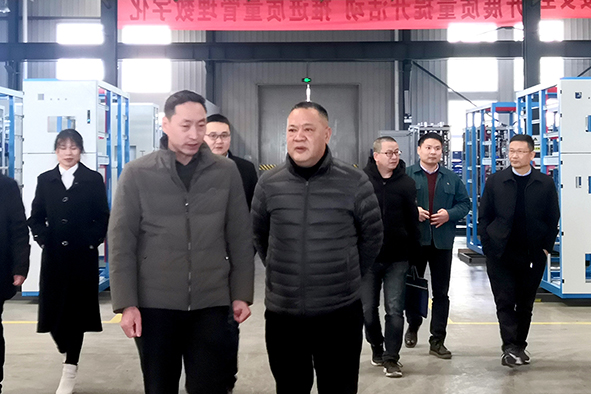 2月24日,重庆市经信委中小企业促进处刘群生处长一行到重庆大全泰来电气有限公司调研。刘处长充分肯定了公司近年来的发展成绩及发展思路。他表示,通过本次走访看到了重庆泰来做为“专精特新小巨人企业”的发展后劲,希望公司坚定发展创新的决心,在新技术、新工艺等方面再创佳绩。