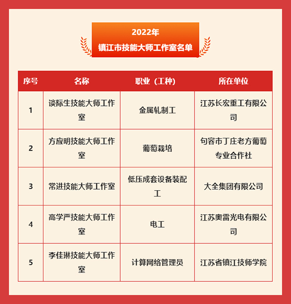 近日,镇江默勒电器有限公司“常进技能工作室”通过初审推荐、专家评审等程序,被评为2022年“镇江市技能大师工作室”。