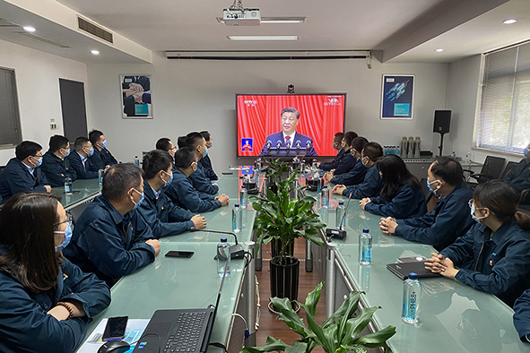 10月16日,中国共产党第二十次全国代表大会在北京人民大会堂隆重召开。大全集团党委积极组织党员、干部及部分员工在集团大楼会议室和各制造公司会议室集中收看党的二十大开幕式直播,认真聆听习近平总书记向大会作的报告。