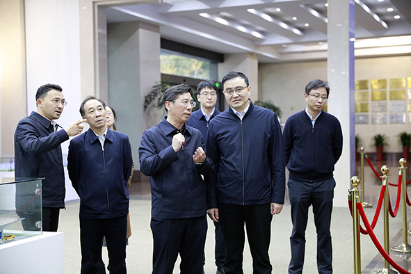 在集团展厅,施大峰副总裁向胡军董事长一行介绍了大全集团在电气、新能源、轨道交通等领域的发展情况。大全研制的自主知识产权产品充分发挥国产优势,具备高安全性、高可靠性,得到了来访领导的一致肯定。