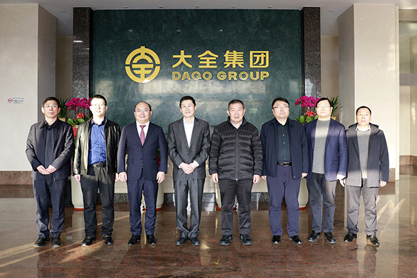 2月1日,内蒙古包头市九原区委书记刘俊义一行莅临大全集团调研交流,大全集团董事长徐广福、总裁徐翔、执行总裁葛飞、副总裁施大峰、大全能源副董事长张龙根等接待。