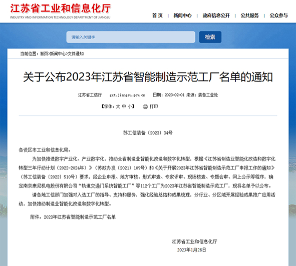 双喜临门:长江股份和镇江默勒双双荣评“2023年江苏省智能制造示范工厂”