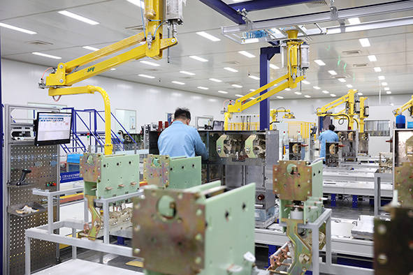长江股份通过企业资源计划管理系统(ERP)、产品数据管理系统(PDM)、制造执行系统(MES)等,将关键设备智能化、生产管理信息化,检测工艺自动化等相关技术集成,建成数字化柔性装配检测产线、开关设备钣金柔性设计制造系统、机器人自动折弯系统、铜排自动化加工系统、数字化二次线加工系统。
