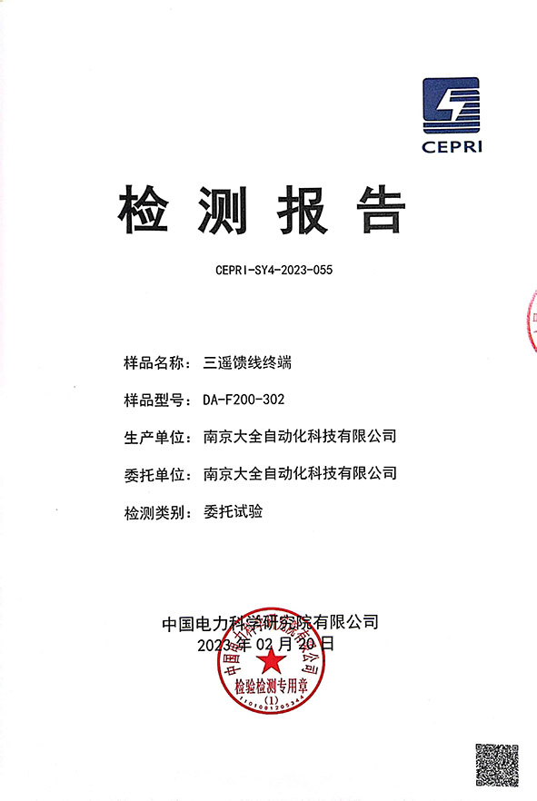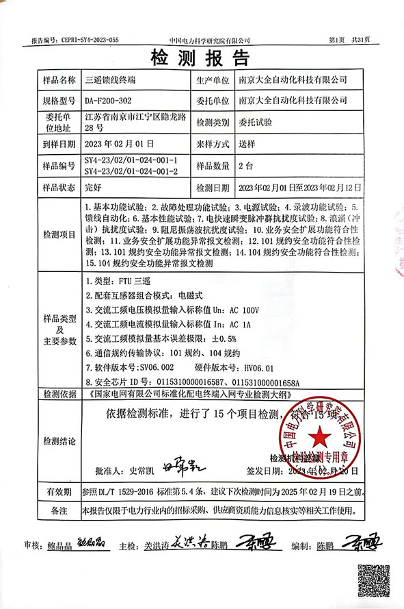 近日,南京大全自动化科技有限公司研制的基于国网151号文《12千伏一二次融合柱上断路器及配电自动化终端(FTU)标准化设计方案(2021版)》的标准化配电自动化终端(FTU),通过中国电力科学研究院专检试验,取得全项合格报告,为大全集团在配电领域的FTU规模化应用、项目落地及推广打下了坚实基础。