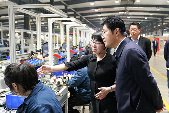宋广智副主任一行参观了大全集团展厅、镇江默勒电器有限公司智能制造车间,详细听取公司发展历程、产业布局、产品创新等方面介绍。大全研制的自主知识产权产品充分发挥国产优势,智能制造、数字化管理助力企业效益稳步增长,得到来访领导的一致认可。