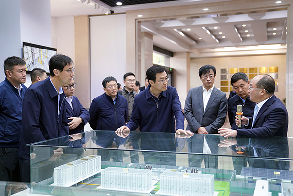 来访领导参观了大全集团数字化展厅,大全集团总裁徐翔详细介绍了企业在电气、新能源、轨道交通产业发展情况和智能化改造、数字化转型等方面取得的成绩,获得来访领导高度赞许。