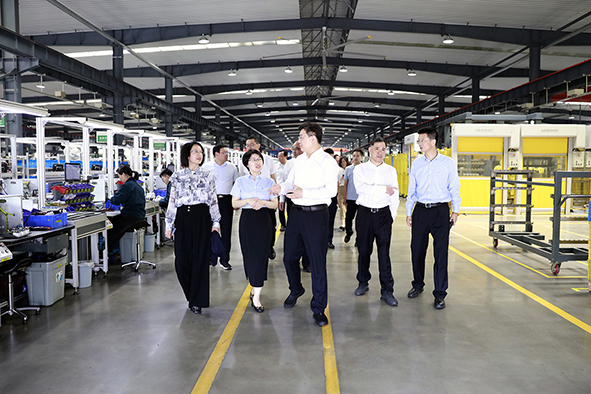 5月25日,淮安市洪泽区区长张灏、区政府办主任胡滨、区工信局局长周仲达等领导一行到大全集团参观调研,扬中市副市长姚建华陪同,大全集团副总裁蔡斌接待。