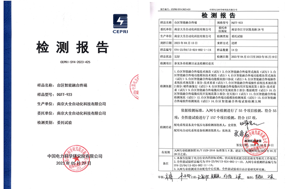 凭借在配电物联网领域的综合技术实力,近日,南京大全自动化科技有限公司型号为DQTT-923的新版台区智能融合终端(简称SCU)顺利通过中国电力科学研究院配网中心、计量中心的双业务专项检测,并取得全项合格报告。
