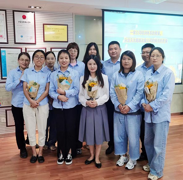 各位讲师在做好岗位工作的同时,以丰富的专业知识和实践经验向新老员工传道授业解惑,助力员工成长和公司发展。座谈会上,行政部代表公司向讲师们献上向日葵花束和小礼品。讲师们欢聚一堂,互相切磋,合影留念定格美好一刻。