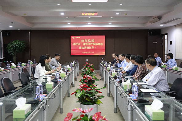 10月17日,江苏省市场监督管理局党组成员,省知识产权局局长、党组书记支苏平率队莅临大全集团调研指导,大全集团执行总裁葛飞接待。
