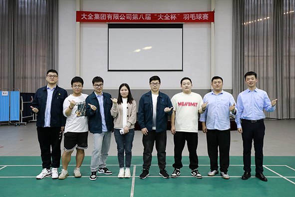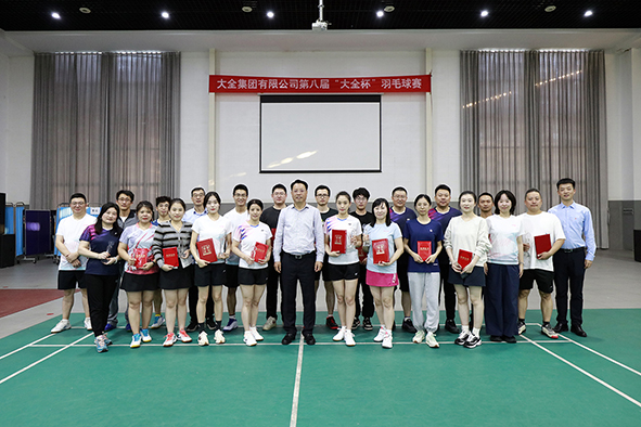 为活跃集团企业文化,增强企业凝聚力,10月中下旬,大全集团组织开展了主题为“羽飞华彩 鹏展未来”的第八届“大全杯”羽毛球比赛。活动得到扬中和南京两个园区员工积极响应,集团及各制造公司广大羽毛球爱好者纷纷报名参赛。