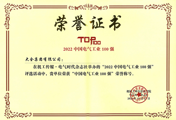 大全集团是电气、新能源、电力电子、智能元器件的领先制造商。中低压成套电器、智能元器件、母线、变压器、直流牵引供电设备等研发制造能力国内领先,为用户提供智能变电站系统、工厂自动化及智慧能源综合管理系统等解决方案。在新能源领域,专业生产覆盖“风光柴储”全产业链的全套电气设备、智能元器件,助力能源变革和“双碳”战略。
