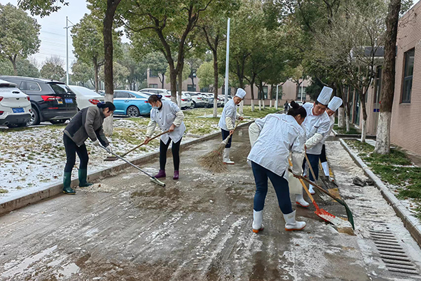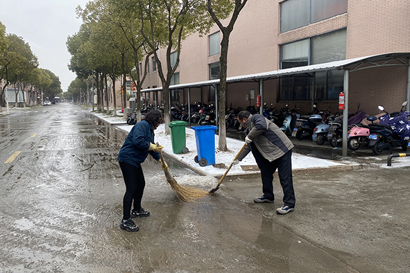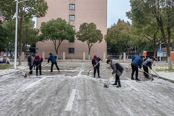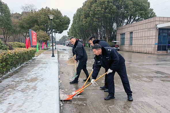 扬中厂区主干道的积雪冰冻层被清理干净