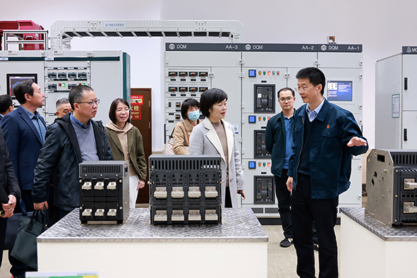 领导一行实地察看了企业生产运营情况,在镇江默勒智能制造示范工厂切身感受智改数转给传统电气产业带来的巨大变化,在集团展厅观看了企业宣传片,听取了有关企业产品、科技创新、市场开拓、销售管理、产业布局及发展规划的介绍,对大全集团取得的成绩和坚持创新驱动高质量发展的举措给予高度赞许和充分肯定。