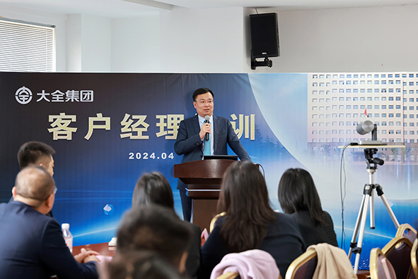 在开班仪式上,集团副总裁朱亚伟通过一组数字,介绍了大全集团的发展历程和规模实力,并引导学员们如何在最短时间吸引到客户,鼓励大家坚定信心,在大全集团这个大平台上充分展示各自才能、发挥优势、创造订单业绩。
